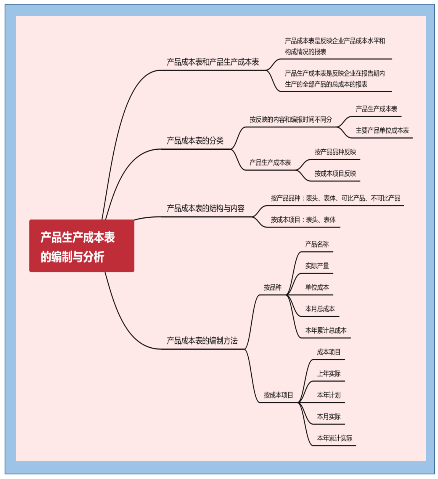 1、了解产品成本表的概念和分类; 2、熟悉产品成本表的结构与内容; 3、掌握产品成本表的编制方法; 4、能正确编制产品成本表、开展成本分析,并做出相应决策; 5、养成诚实守信、勤俭节约、爱岗敬业、精益求精、认真严谨、坚持准则的职业道德。 |