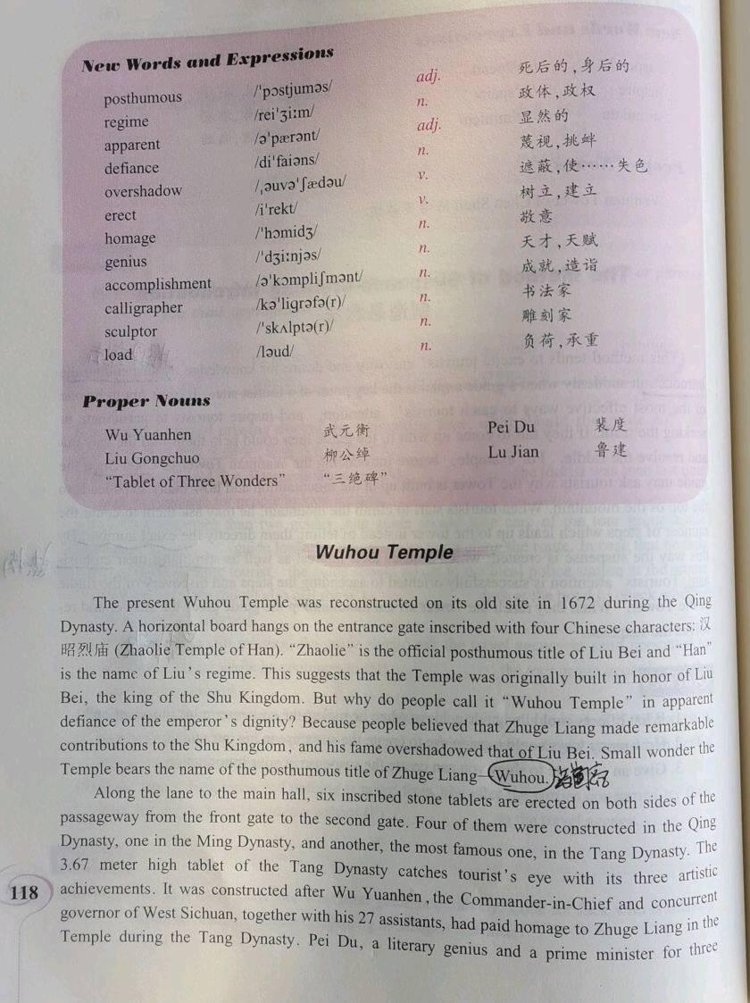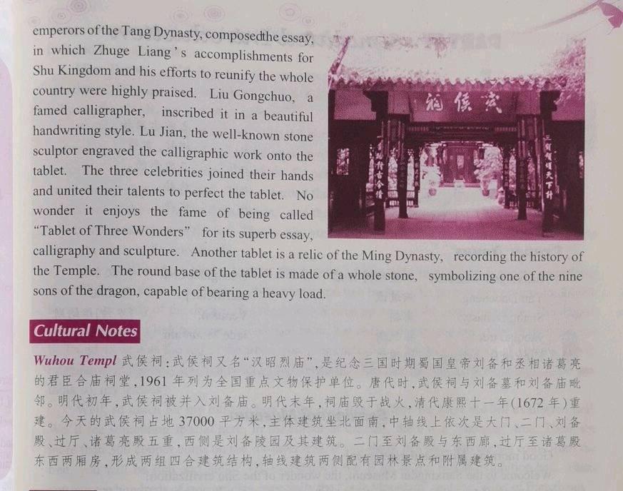 Good evening, Ladies and gentlemen, it’s my great honor to be your local guide. Today, we are going to visit the Chengdu Wuhou Temple. before we get in I should give you some information about China’s history , which makes you have a better understanding about the temple. China experienced a lot of dynasties .But there is a period which is very famous .that is the Three kingdoms Period .Ok, ladies and gentlemen I will ask you a question first before telling you what happened in that period .Did you read a famous Chinese classic novel named the Romance of the Three Kingdoms? Maybe someone did but some didn’t . Actually , this book is about what happened at that time.