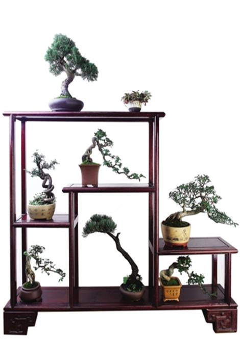 通过对树木细致地观察、分析、研究,取其大要,去其繁杂,根据设计蓝本对原始树木进行裁剪加工,并运用艺术的强化、变形、夸张等技巧,使树木盆景达到虽是人工创造却富有“野趣天成”的艺术美感。