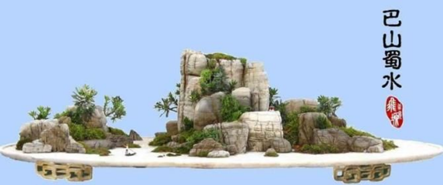 水的波光倒影、湖光山色、水声“泉石粼粼声似琴”,在盆景制作中很好的构成了水景的自然美。