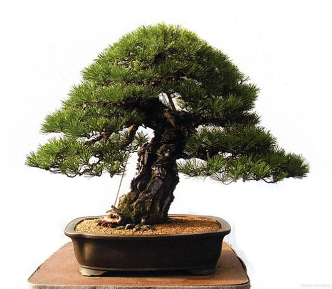 上图为木村正彦先生的黑松盆景,是具代表性日本林型独头独干类型盆栽作品,三角形构图,树面扇形,变化不大。讲究壮重、华丽、结构严紧,矮化,形象表达为主,象征性的植物自然生态构图,写实较强。但是未能体现出内涵中的意境神韵所在的形象思维的节奏感表达。当然,这与它的民族流派有关。