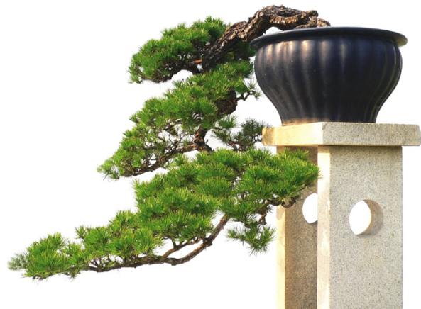 在现实环境中,真正十全十美适合盆景审美造型的树木毕竟很少,它们往往带有许多局限性,或缺枝、或平滑、或杂乱……。这就决定了盆景艺术家需要通过对树木进行的艺术加工制作,使之成为一件顾盼呼应、疏密得当、层次分明、虚实相生、尽可能完美的盆景艺术作品。在盆景艺术造型创作之前,首先必须考虑的是树木造型的总体构思设计。