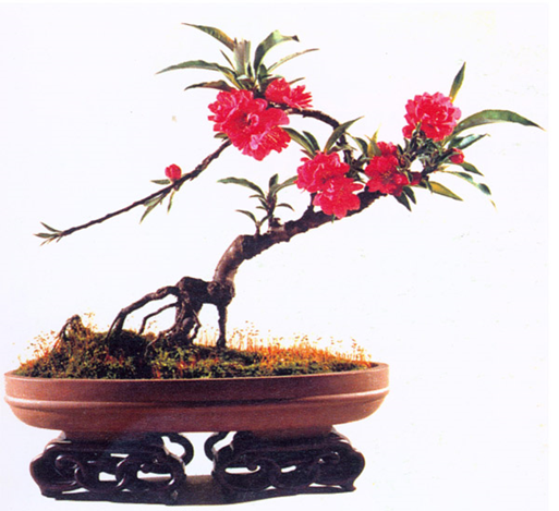 盆景树木自然美的物质基础是由树木的天然属性构成,包括树木的根、干、枝、叶、花、果,都有其姿势、形态、颜色、韵味;花、果还有其香味;它们带给人们的美感是感人至深的,例如悬根露爪、枯峰奇特、姿态优美、繁花似锦、花香袭人、果实累累等等。