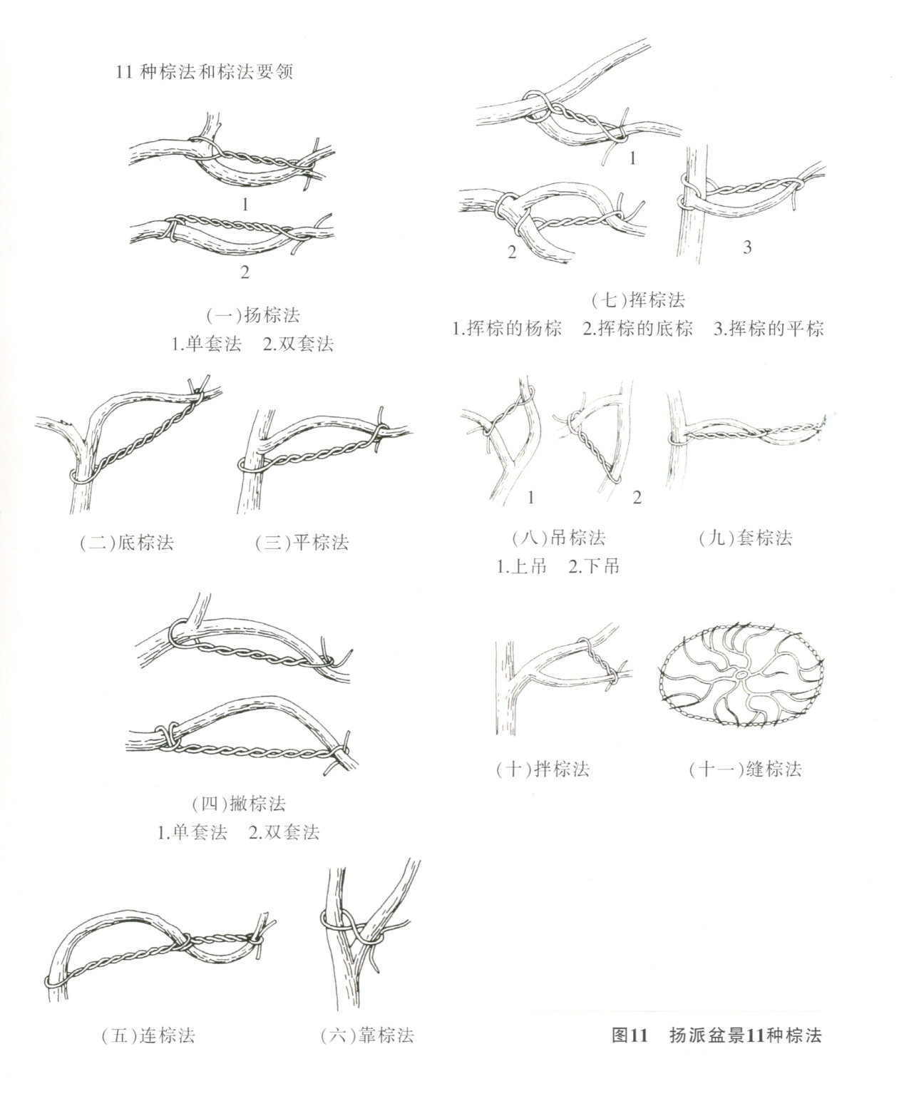 (3)棕法要领:11种棕法和棕法要领(图11)。