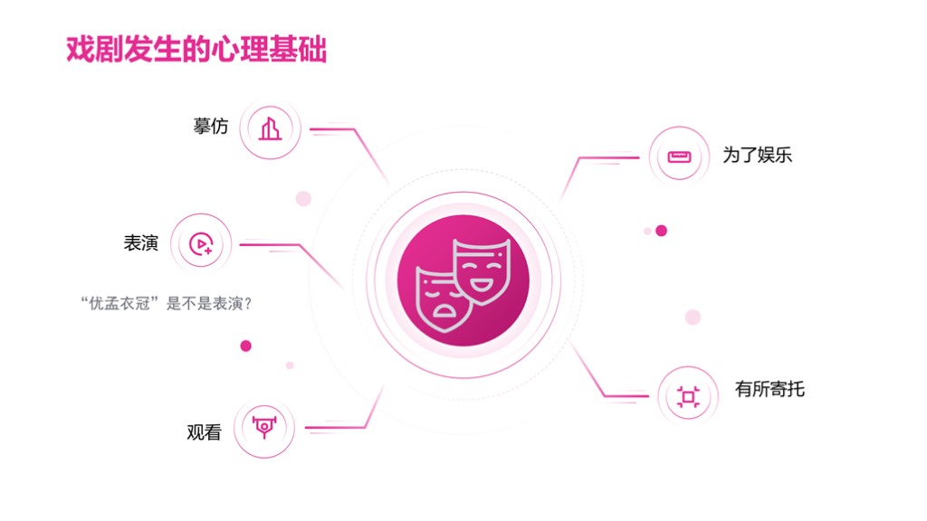 历史记载的“优孟衣冠”,虽然摹仿绝妙,达到了以假乱真的程度,但因缺了“观”与“演”之间的“契约”,便不能认为是一种艺术的表演。