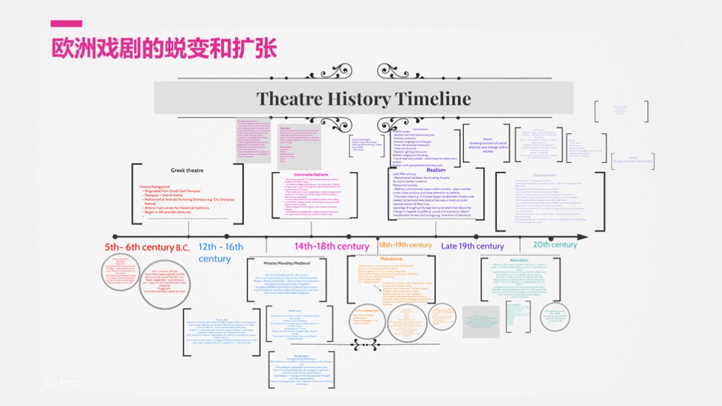 由世界史的整体趋势所决定,西方世界在地理大发现和工业革命以后,加快了一体化的步伐,其间几乎没有多少特色文明可以单独保存。由此,欧洲戏剧在文艺复兴以后的很大发展,可以视为一种各国大体同步的过程,虽然彼此时而有着差异,但经互相促发和诱导,最终形成西方戏剧文化的整体进步。因此,欧洲20世纪以前的戏剧发展,基本上是一系列思潮影响下的共同运动,由古典主义到浪漫主义,再到现实主义和自然主义,而不同的文艺思潮导致不同的戏剧流派形成,各自推出了经典性的代表人物和巨著,产生巨大的影响。