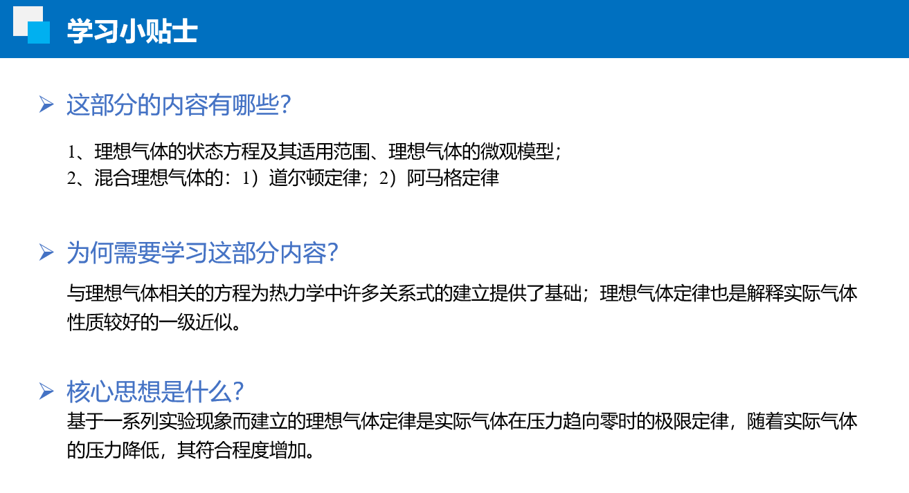 1)写出理想气体状态方程的表达及适用范围