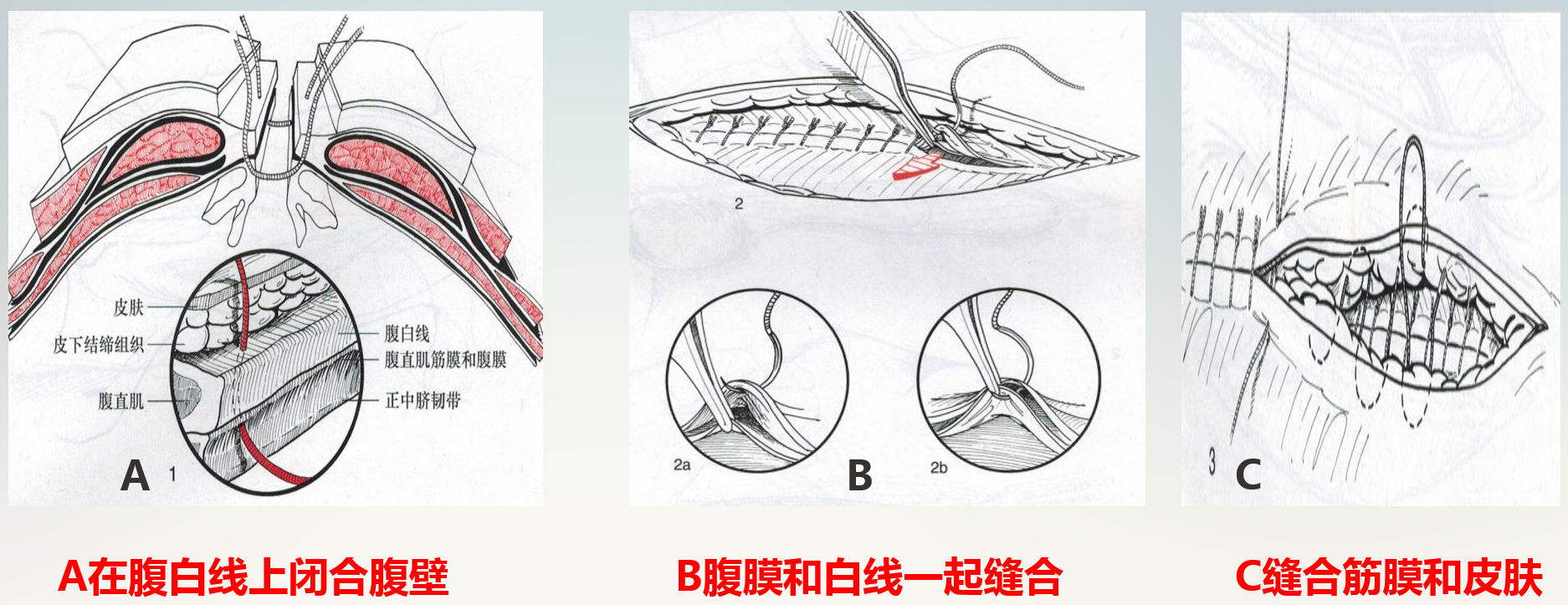 腹侧壁由外向内依次为皮肤、皮下筋膜、腹外斜肌、腹内斜肌、腹横肌和腹膜。