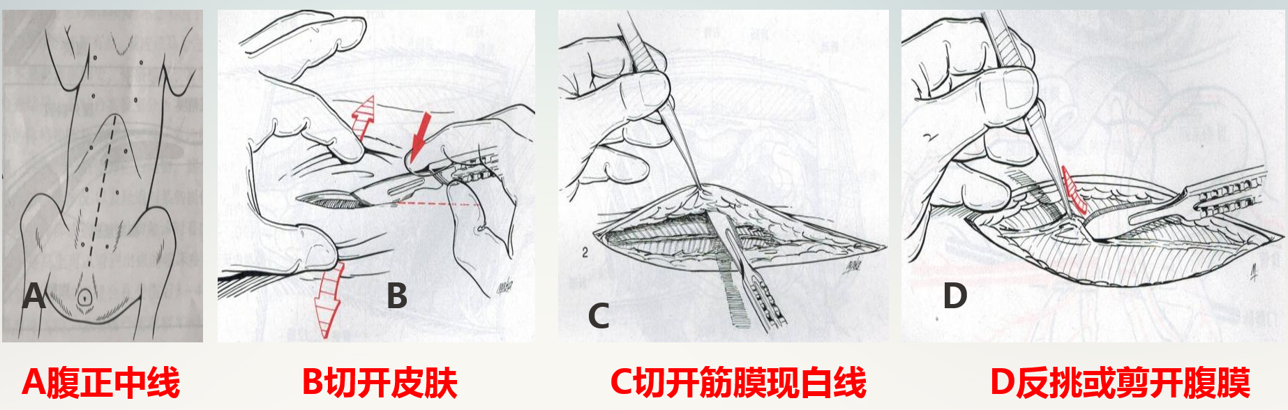 腹底壁由外向内依次为皮肤、皮下筋膜、腹外斜肌、腹内斜肌、腹直肌和腹膜。