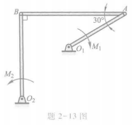 2-13 四连杆机构在图示位置平衡,