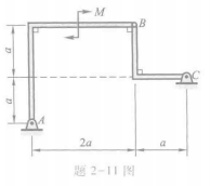 2-11 在图示结构中,各构件的自重略去不计。在构件AB上作用一力偶矩为M的力