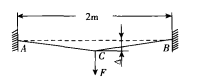 2-13 图示A和B两点之间原有水平方向的一根直径d=1mm的钢丝,在钢丝的中点C加一竖直荷载F。已知钢丝产生的线应变为ε=0.0035,其材料的弹性模量E=210GPa,钢丝的自重不计。试求: