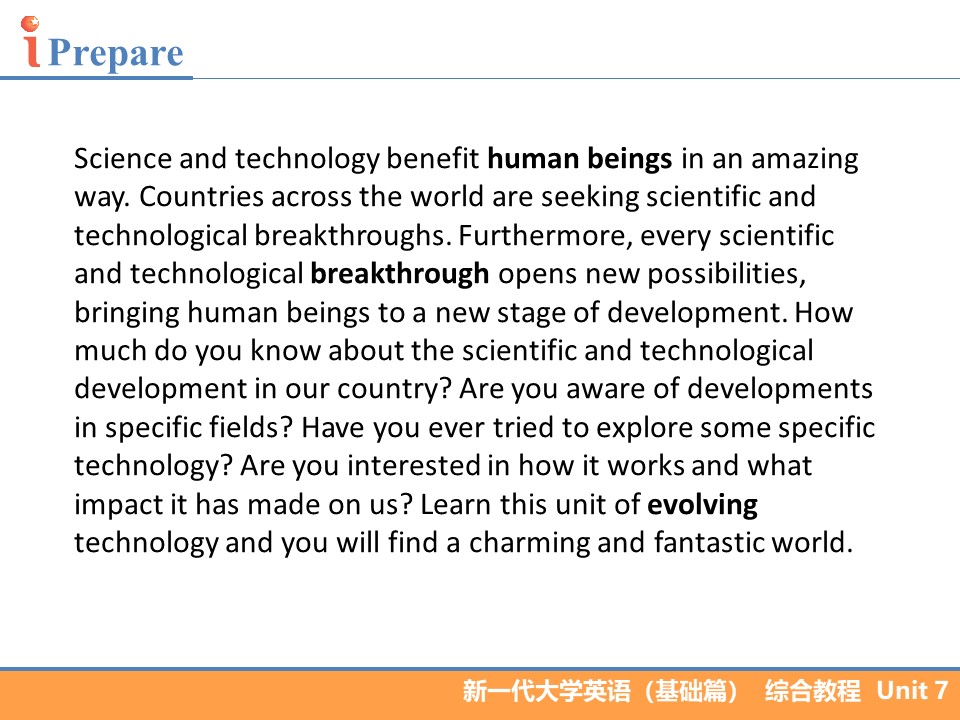 • 4 基础视听说教程2 B2 U7 Evoloving Technology