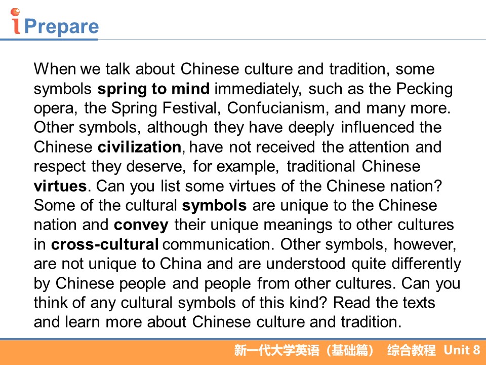 • 5 基础综合教程2B2 U8 Culture and Tradition