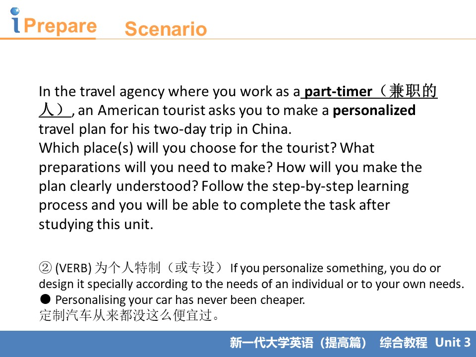 • 9 提高篇视听说B1 U3 A journey of discovery