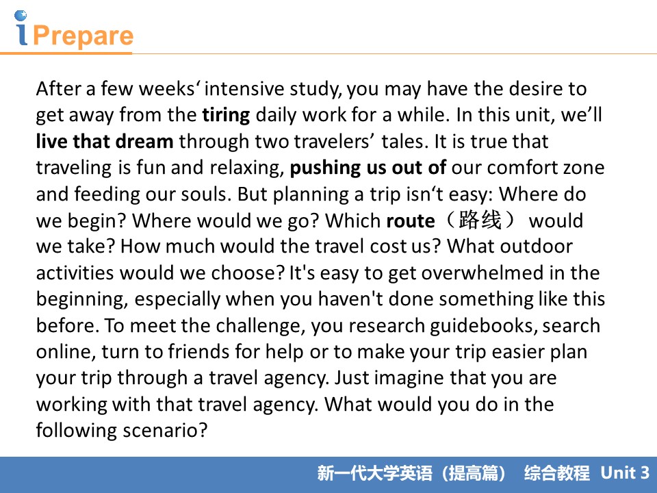 • 8 提高篇综合教程B1 U3 A journey of discovery
