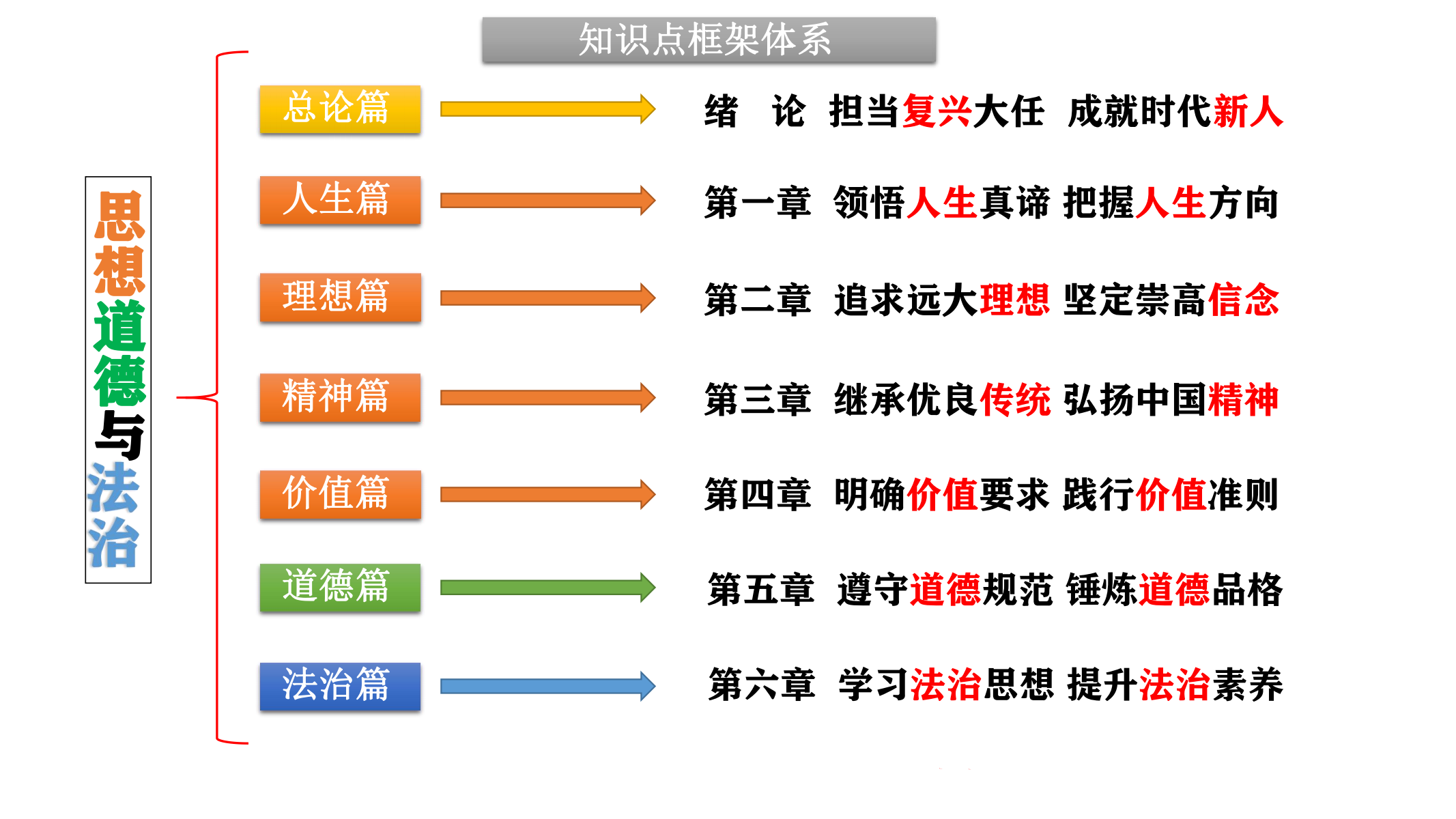 本课程针对当代大学生成长过程中面临的思想道德与法治问题,开展马克思主义的人生观、价值观、道德观和法治观教育,在理论学习和实践体验中,帮助大学生领悟人生真谛、把握人生方向,追求远大理想、坚定崇高信念,继承优良传统、弘扬中国精神,培育践行社会主义核心价值观;帮助大学生遵守道德规范、锤炼道德品质,把正确的道德认知、自觉的道德养成和积极的道德实践紧密结合起来,引领良好的社会风尚;帮助大学生学习法治思想、养成法治思维,自觉尊法学法守法用法,从而具备优秀的思想道德素质和法治素质,为逐渐成为德、智、体、美全面发展的中国特色社会主义伟大事业的合格建设者和可靠接班人,打下扎实的思想道德和法律基础。综上所述,本课程的目标为:1.提高学生思想政治觉悟;2.提升学生道德素质;3.提升学生法治素养。
