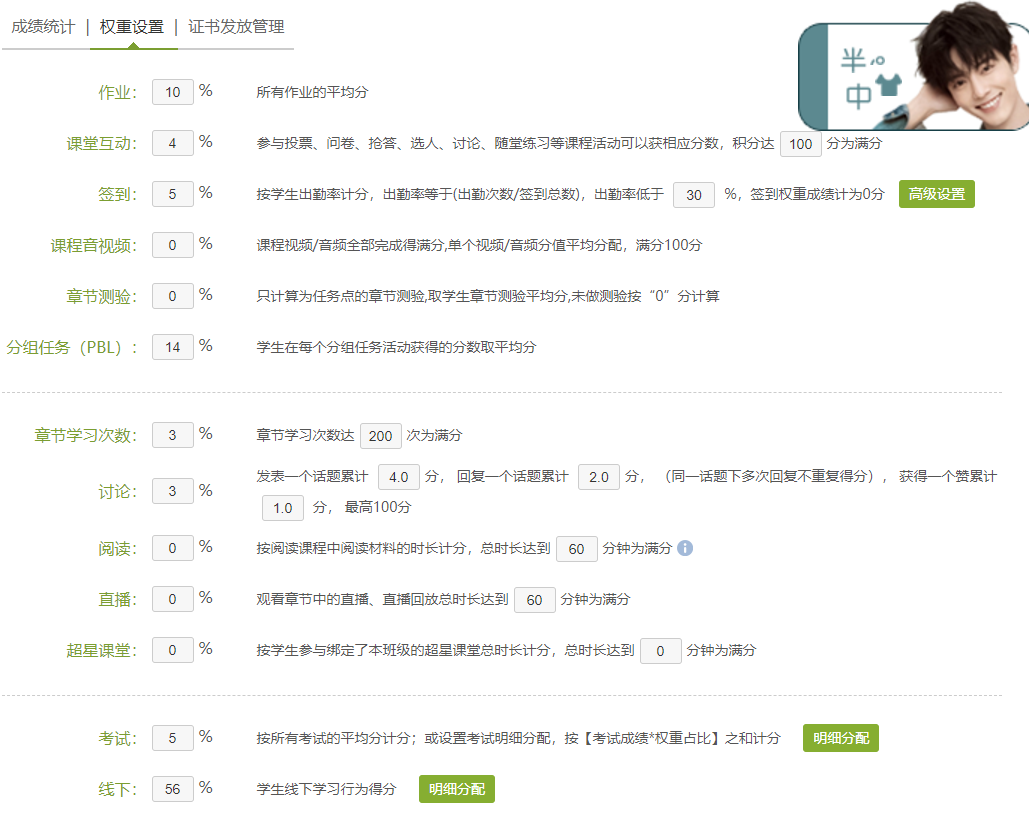 B=1:协助老师1次计1分,累计不超过10分,平时分满分不超过100分。