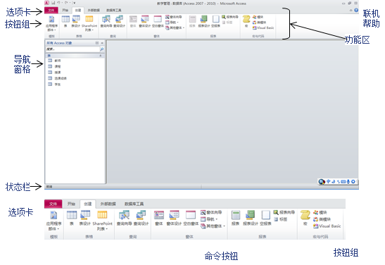 用户界面由3个主要部分组成:后台视图、功能区和导航窗格。