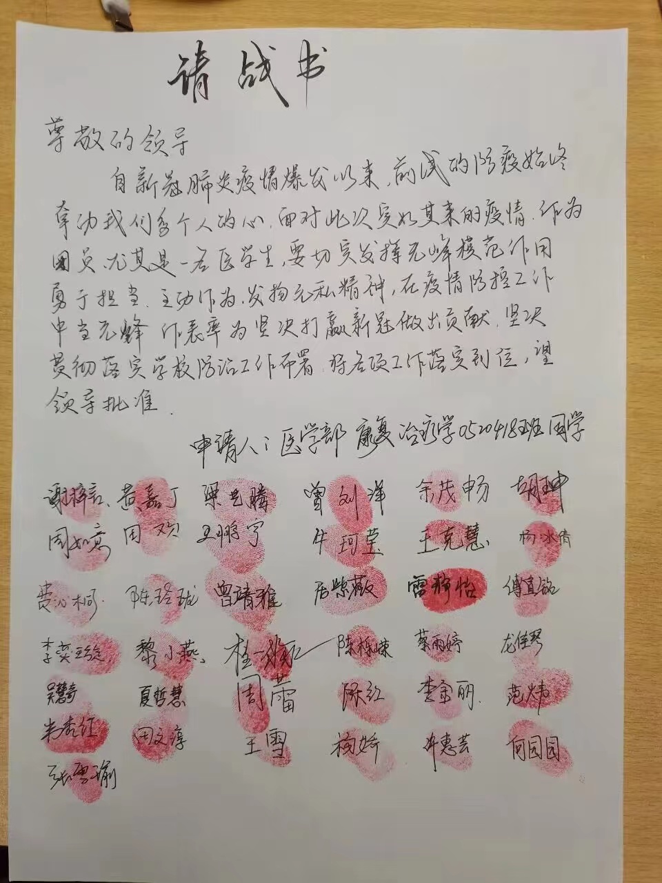 当疫魔肆虐、国难当头之时,作为拥有15年党龄的老党员,作为一名医务工作者,疫情就是命令,抗疫就是职责!我必须发扬党员的先锋模范作用,迎难而上、冲锋在前。你深明大义,坚定地支持我向院部递交请战书,送我奔赴一线。临别时,你告诉我:“家里有我,放心去战斗吧!”让我吃下了定心丸。