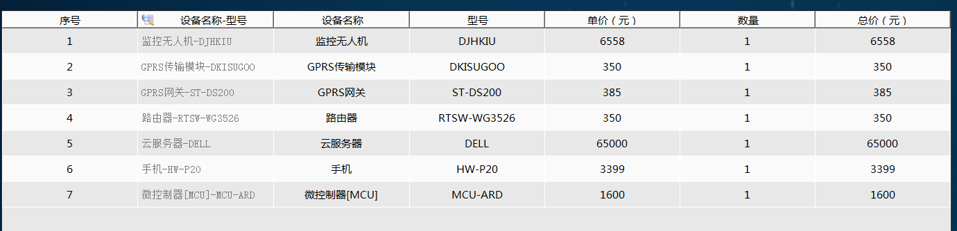 首先需要进入系统调试中进行系统预算,此实验中农业智联设备选择监控无人机、GPRS传输模块、GPRS网关、路由器、云端服务器、手机、微控制器这些设备。如图1.4.2所示: