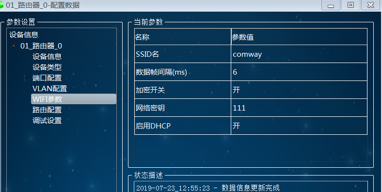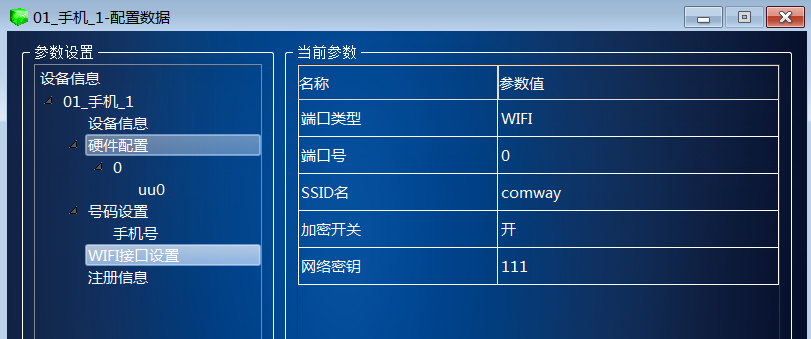 | WIFI接口设置 | SSID名 | comway | WIFI参数 | SSID名 | comway |