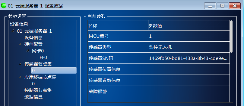 | 设备信息 | SN码 | 自动生产 | 传感器节点集/0 | 传感器节类型 | 无人机监控 |