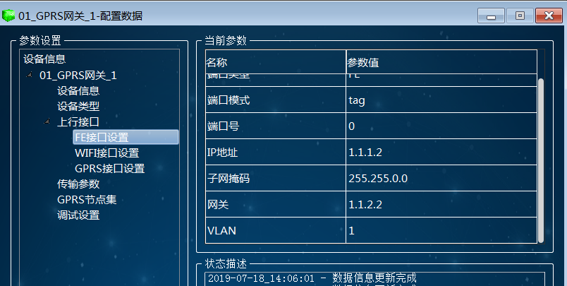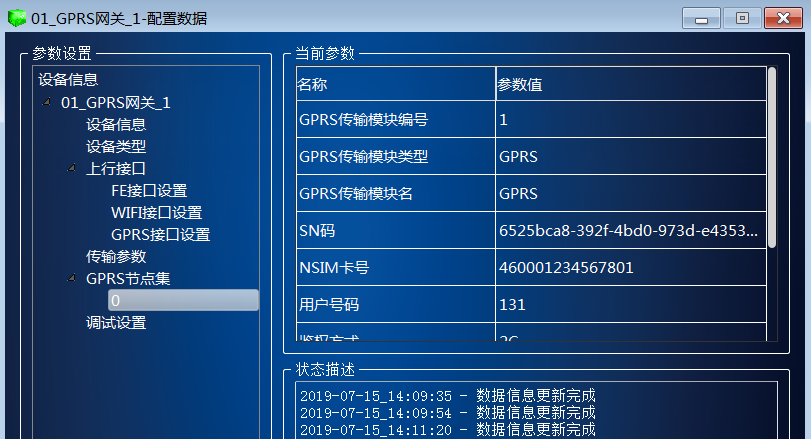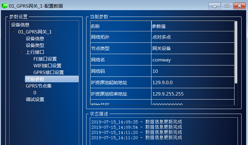| 总线速率 | 1024 | GPRS节点集/0 | 节点类型 | 网关设备 | |