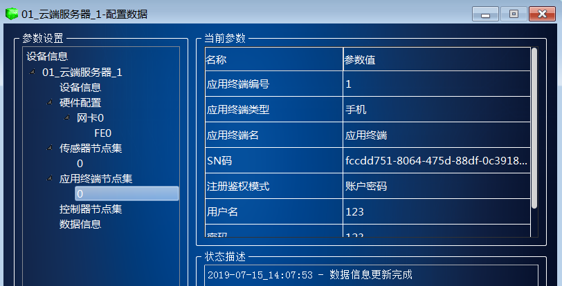 | 设备信息 | SN码 | 自动生成 | 应用终端节点/0 | 应用终端类型 | 手机 |