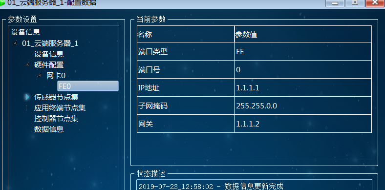 | 硬件配置/网卡0/FE0 | IP地址 | 1.1.1.1 | 对端设备SN码 | 与A一致 | |
