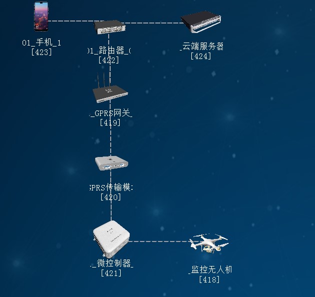 在此实验中主要通过监控无人机连接路由器,注册到云端服务器。并且由手机控制无人机的巡航路线,来完成对农业园的监控与了解。