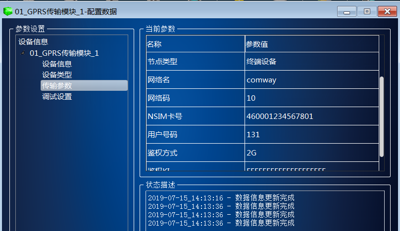 | 网络名 | comway | NSIM卡号 | 460001234567801 | ||