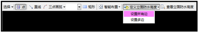 温馨提示:由于“地面2”聚氨酯防水层需要上反150,所在选择工程量代码时,需要选择水平防水面积代码;同时需要在构件属性中“是否计算防水”选“是”;构件绘制完毕之后,在工具条中使用【定义里面防水高度】→【设置所有边】,把“地面2”的反边设为150mm。