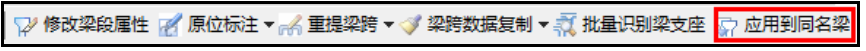 第一步:在菜单栏点击“绘图”→“应用到同名称梁”或者在工具栏中选择【应用到同名梁】命令,在绘图区域选择梁图元。