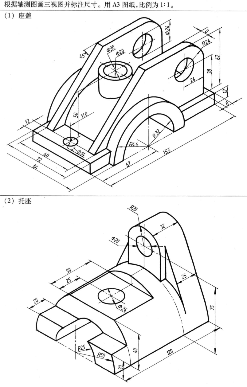 建议动手能力强的人绘制如下模型的三视图(任选一)(分数会更高)