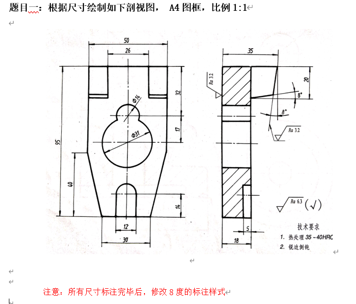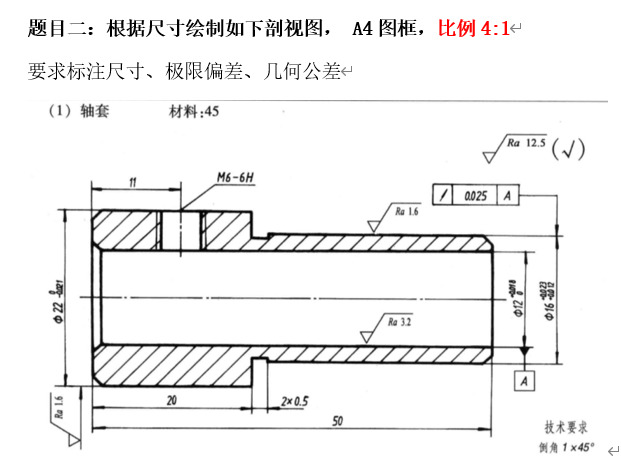 3、学会角度、极限偏差、几何公差等要素的正确标注。