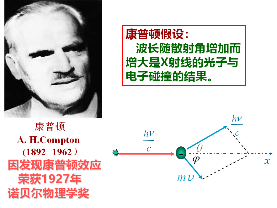 康普顿效应:高频X射线经物质散射后,散射光波长随散射角增加而增大的现象。