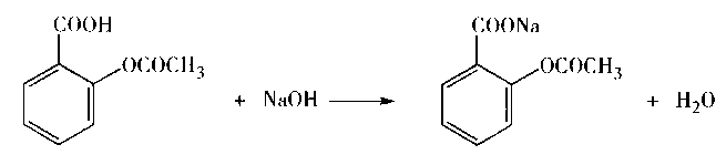 1.原理  利用阿司匹林分子结构中的游离羧基具有一定的酸性,可与碱成盐的性质,用氢氧化钠滴定液直接滴定。反应式如下: