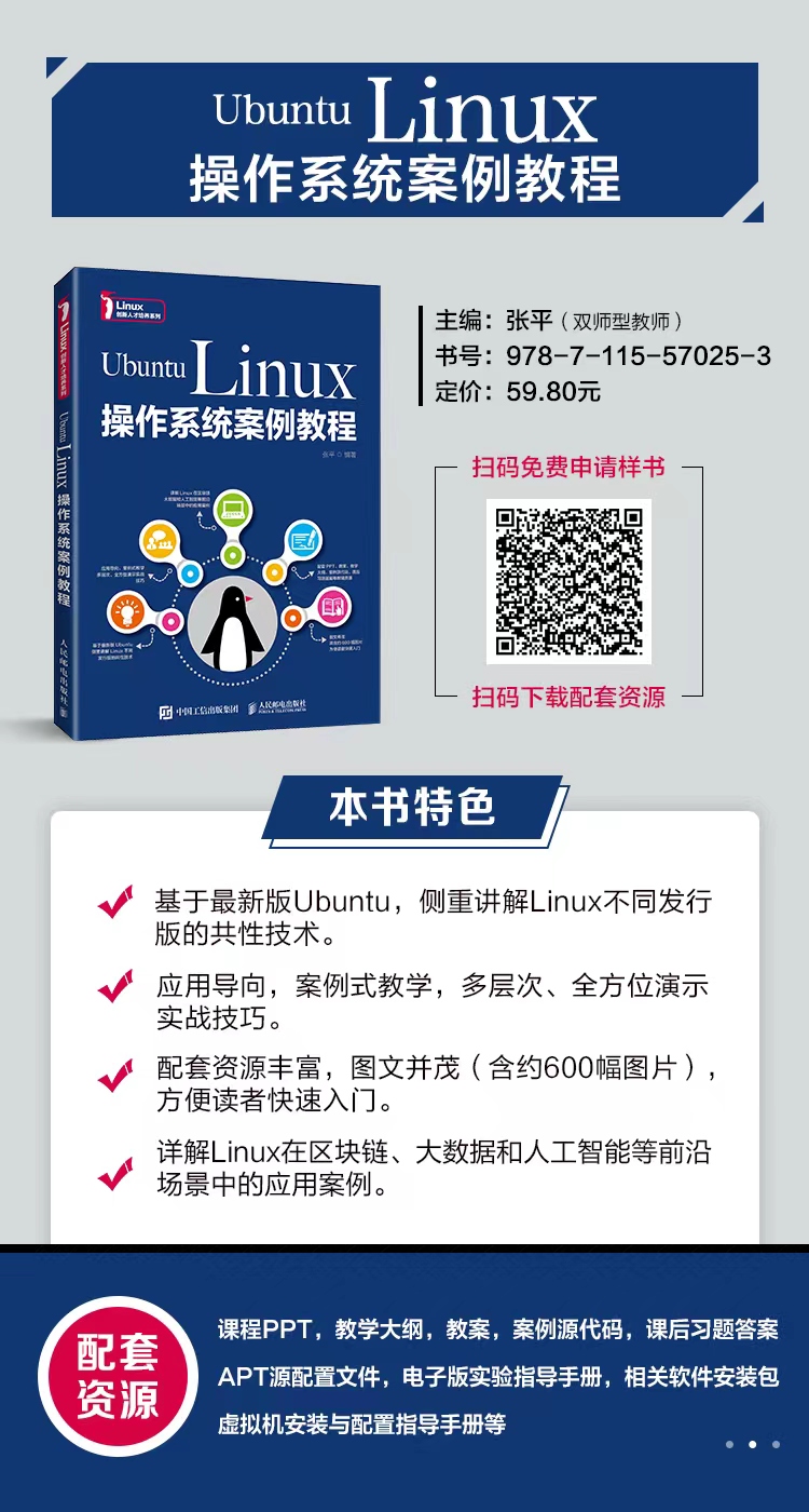 【1】张平, Ubuntu Linux操作系统案例教程,人民邮电出版社,2021,书号:978-7-115-57025-3