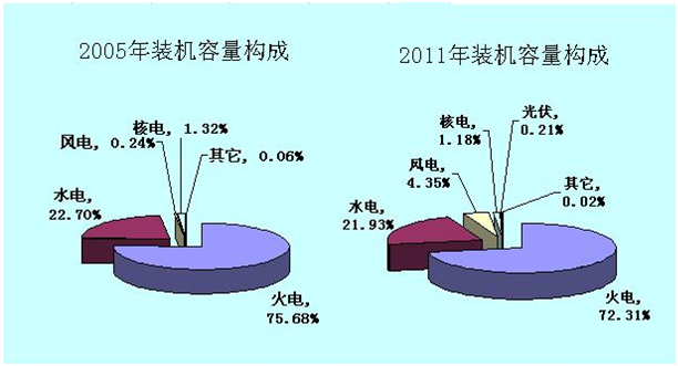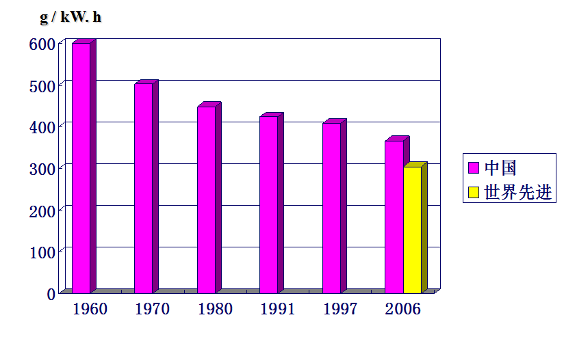 自1996 年起,我国发电装机容量一直位居世界第二位。截止2006年底,全国发电装机容量已达到6.22 亿千瓦,2002-2006 年,发电装机和发电量年均增长率达到13.1%和13.8%。••供电标准煤耗逐年下降,6000千瓦及以上电厂供电煤耗从2002 年的383 克/千瓦时下降到2006 年的366 克/千瓦时;较好地控制了工程造价,火电机组每千瓦造价由2002 年的5000 元下降到2006年底的4000 元左右。
