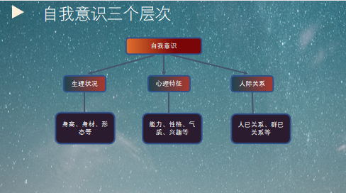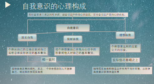 ①自我认知——属于人的认识范畴,包括自我感觉、自我观念、自我分析、自我观察、自我评价、自我批评等。