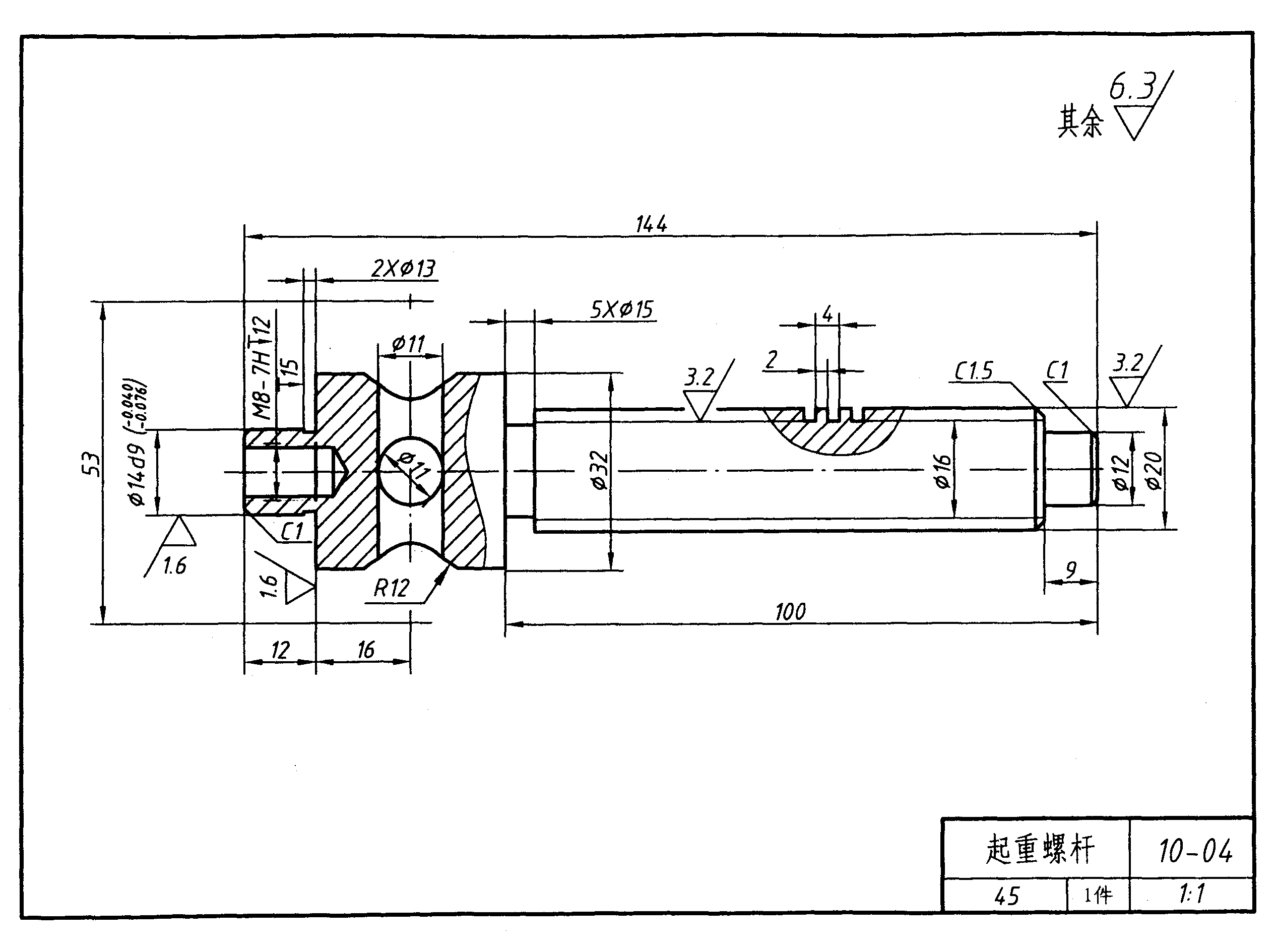 (6).零件的材料是: 45号钢 。