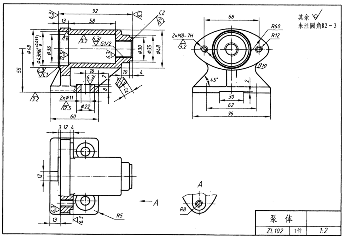 3.看懂泵体零件图,回答下列问题: