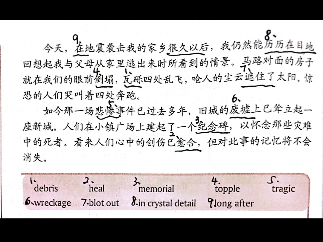 5.人们说时间会治愈一切创伤.但对在这一事件中失去亲人的人们而言,时间能填补他们心中的空白吗?(heal, void)