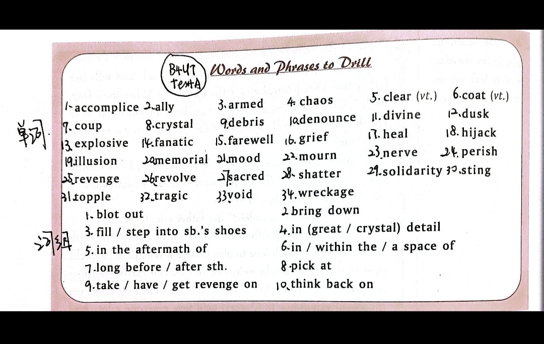 [13-18]13.explosive 14.fanatic 15.farewell 16.grief 17.heal 18.hijack