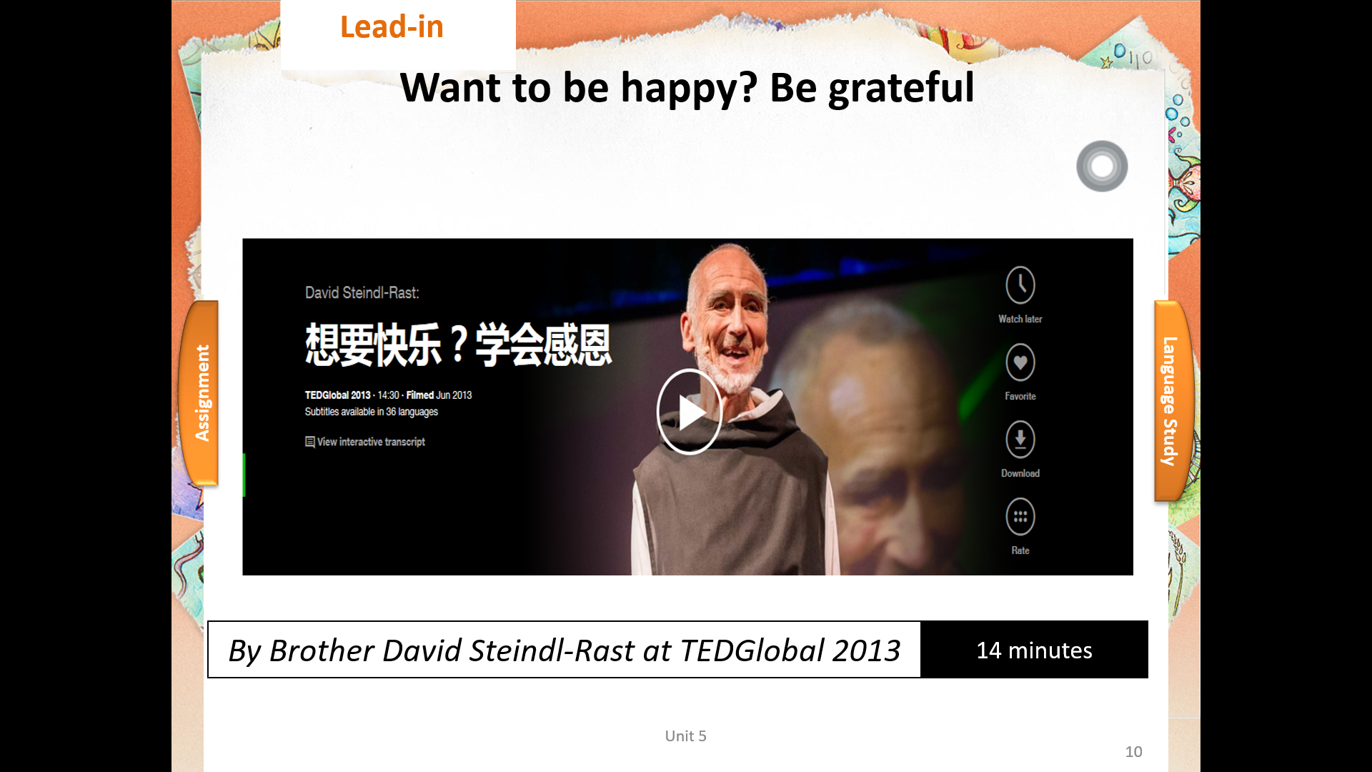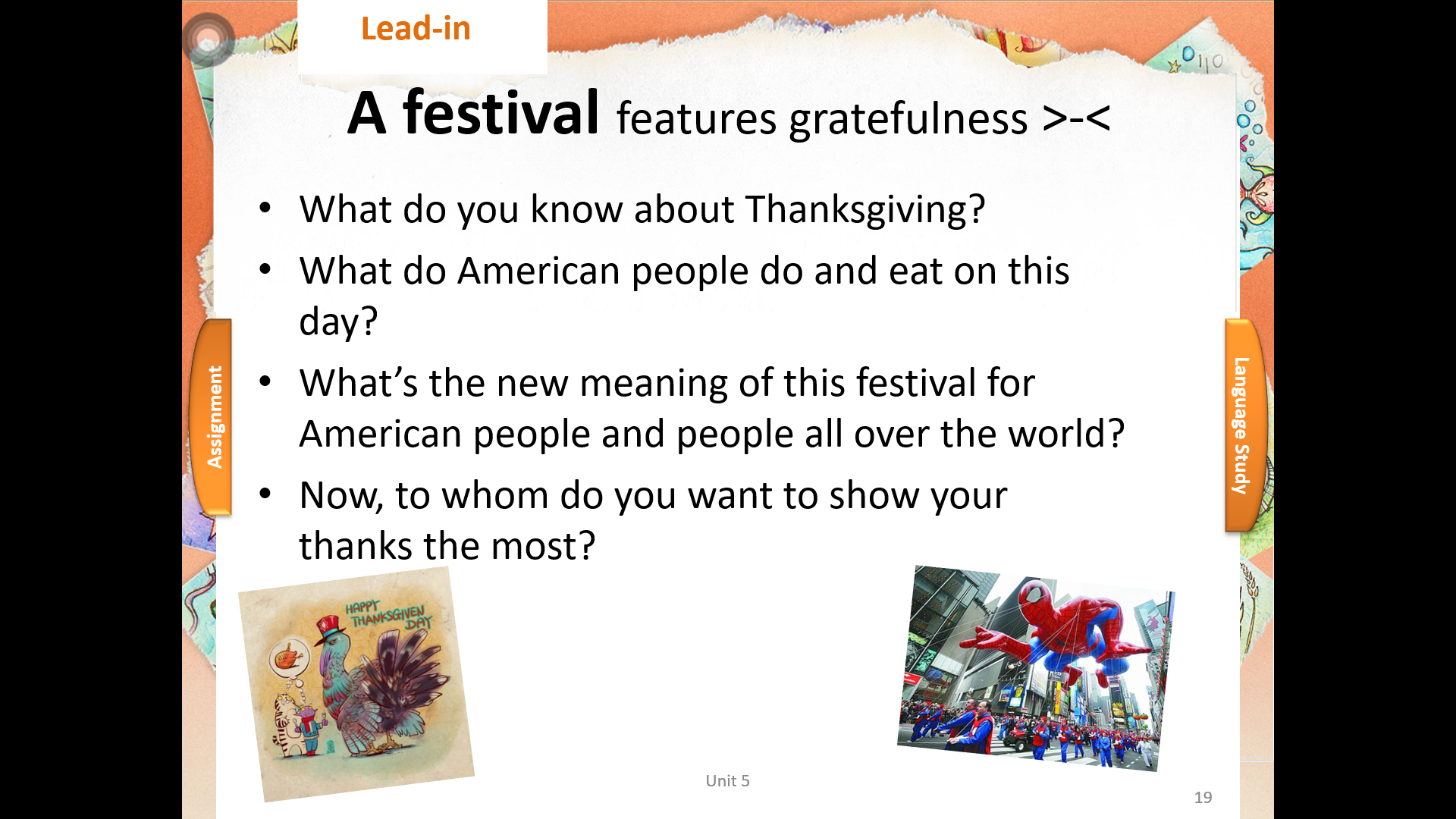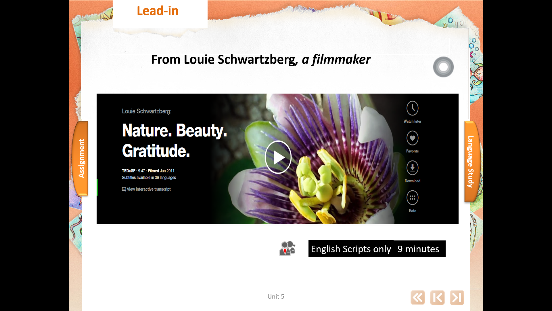 In this part, students will be introduced to the theme by brainstorming, video clips, and speaking tasks.