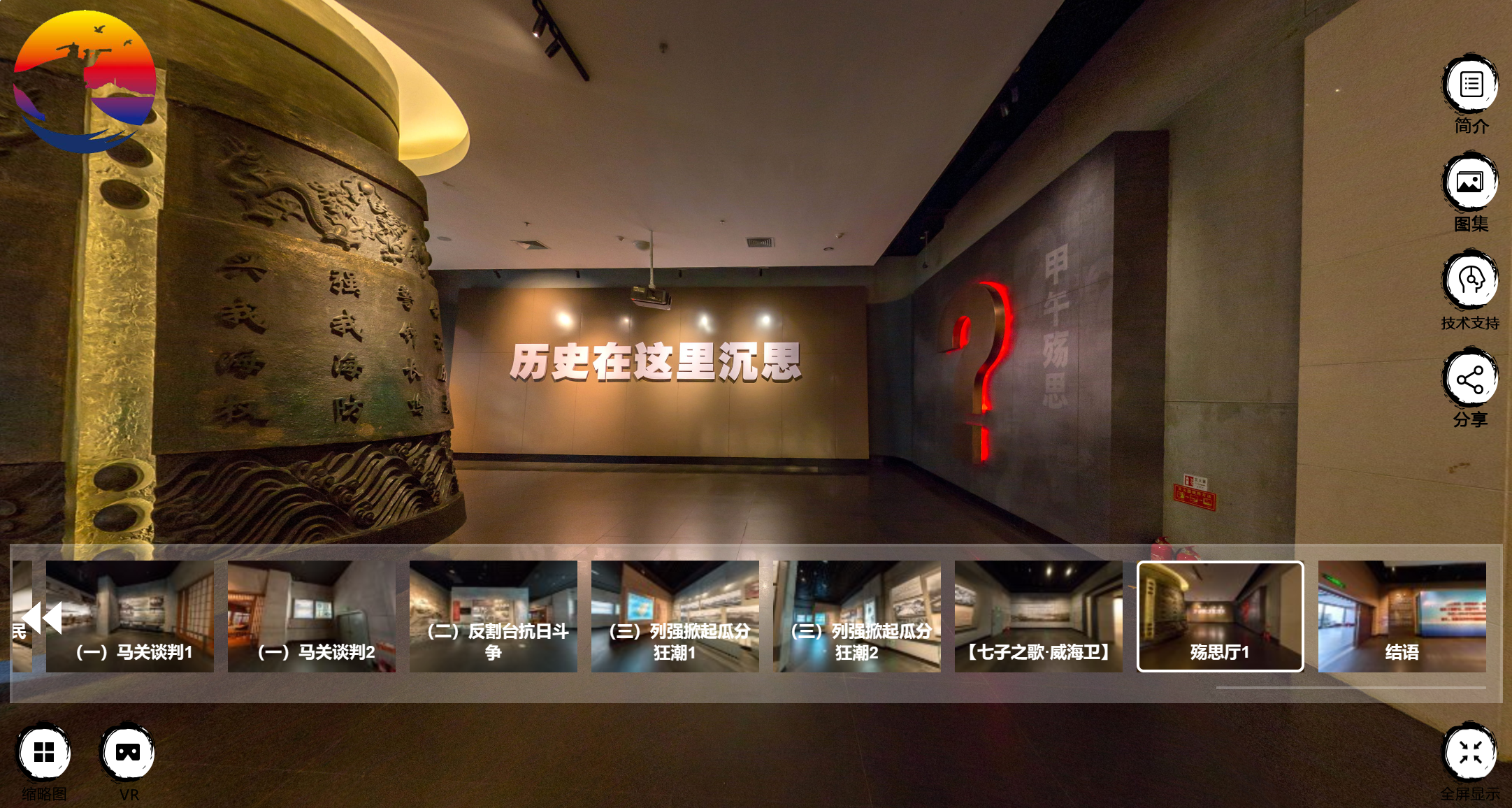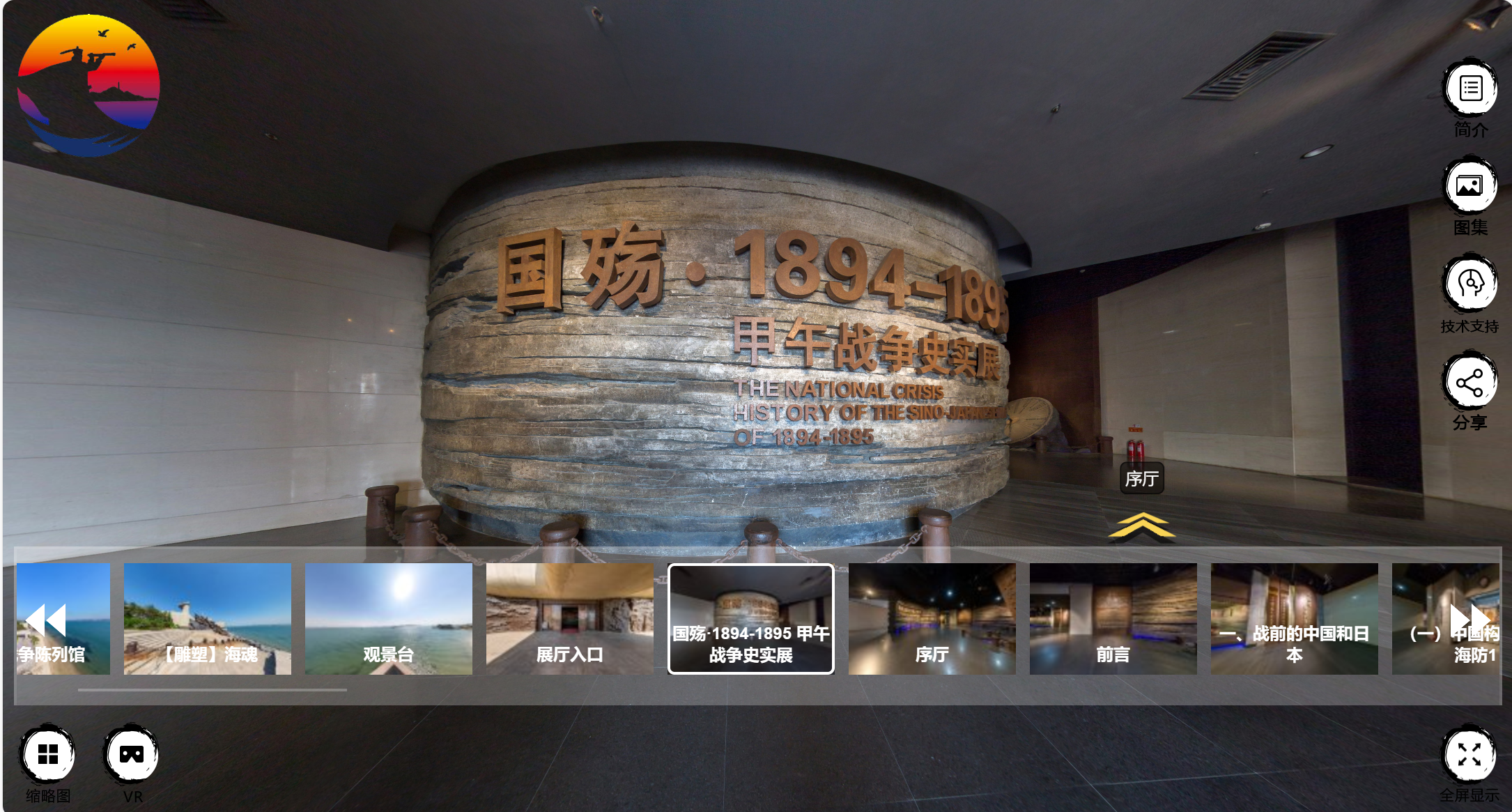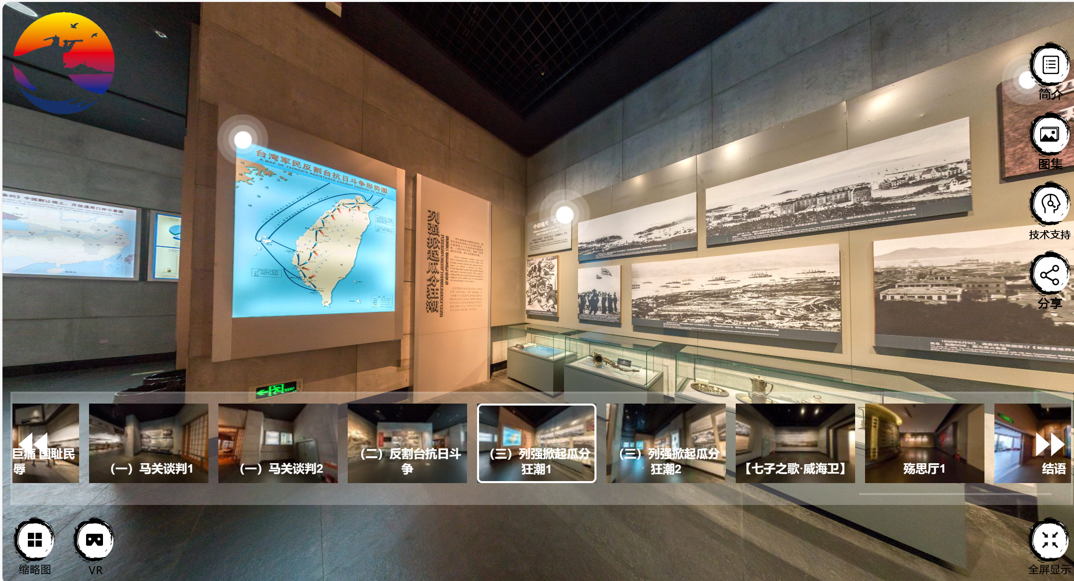 展馆简介:中国甲午战争博物馆位于山东省威海市环翠区丁公路,建于1985年3月21日,是威海刘公岛甲午战争纪念地的专门保护管理机构,也是全国著名的爱国主义教育示范基地。中国甲午战争博物馆陈列馆是一座全面展示中日甲午战争历史的综合性展馆。该馆于2005年3月启动建设,2008年正式对外开放。该馆占地面积10000多平方米,建筑面积8800平方米。博物馆以《甲午战争:1894—1895》为基本陈列,共展出珍贵甲午战争历史图片650多幅,复制了大量甲午战争时期的武器装备,还原再现了多个超写实人物塑像场景,如:“金州曲氏一家投井场景”、“李鸿章在马关谈判场景”等。
