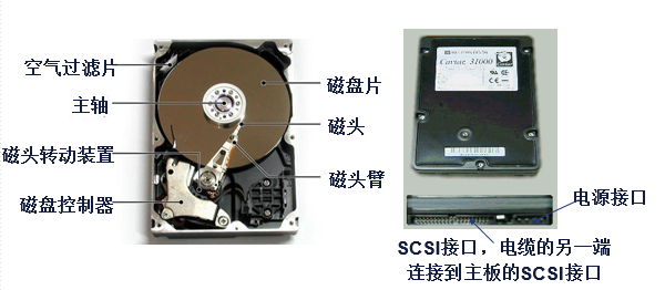 内部结构:硬盘是由磁盘片、读写控制电路和驱动机构组成。