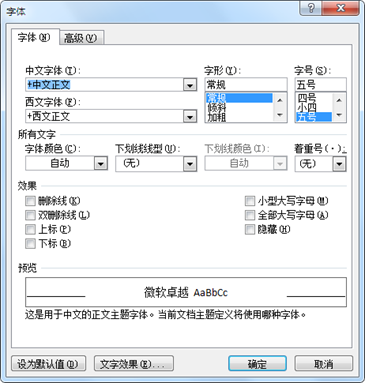 ② 单击右键,在随之打开的快捷菜单中选择“字体”,打开如图所示的“字体”对话框。