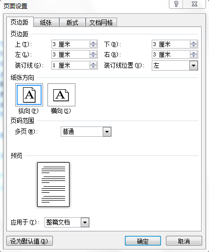 可以使用“页面布局/页面设置”分组的各项功能来设置纸张大小、页边距和纸张方向等。